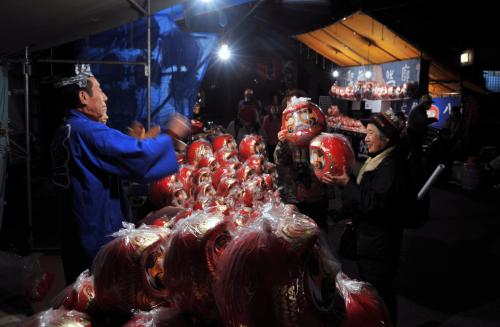 長谷寺の参道にだるまや暦、熊手など新年を迎える縁起物や菓子などを売る市がたちます。