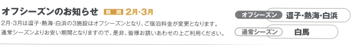 オフシーズン(2月・3月)のお知らせ