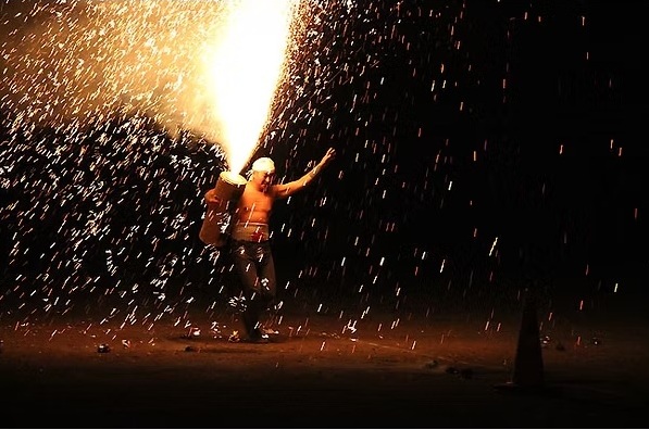 河内諏訪神社例大祭で行われる手筒花火大会。